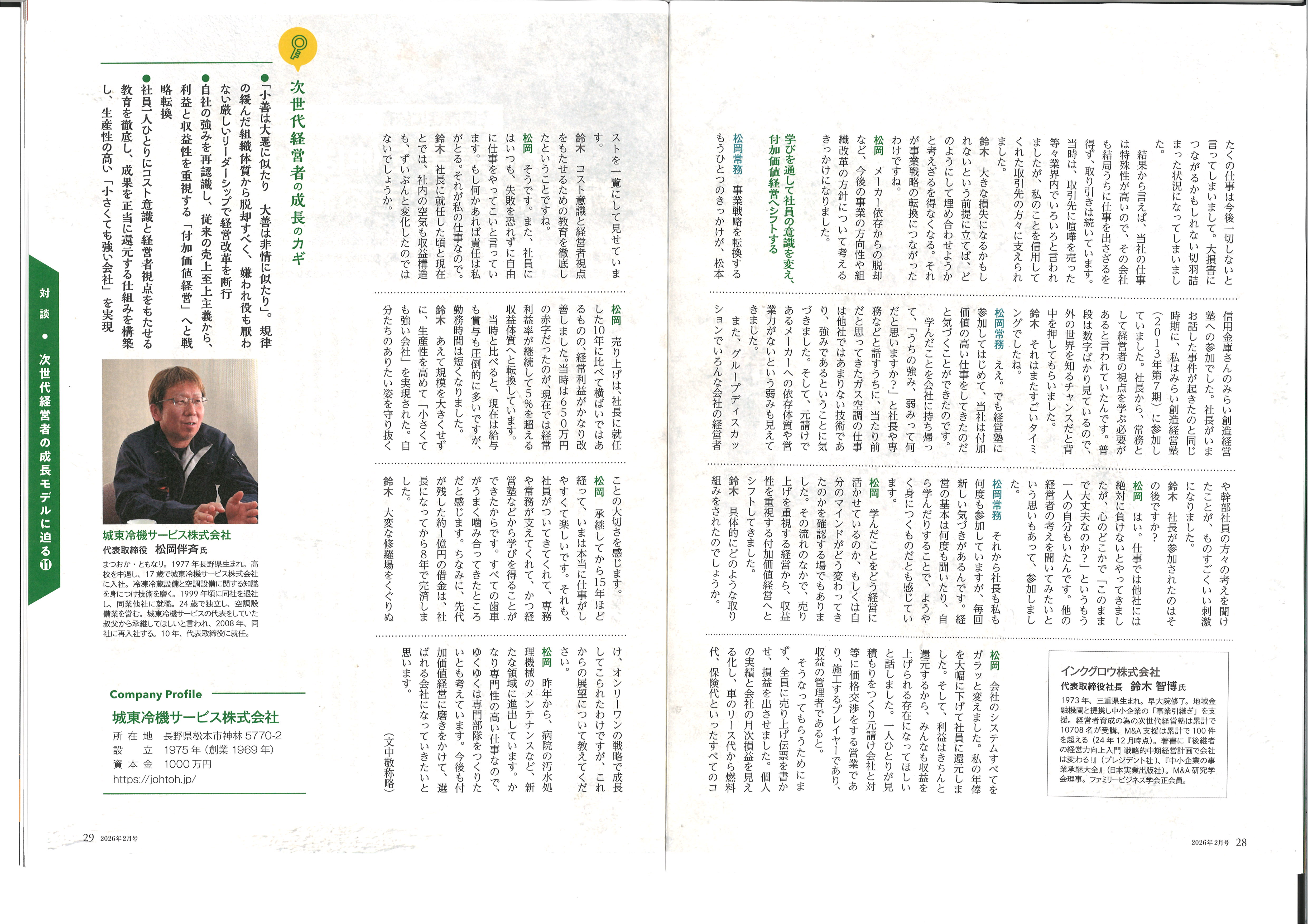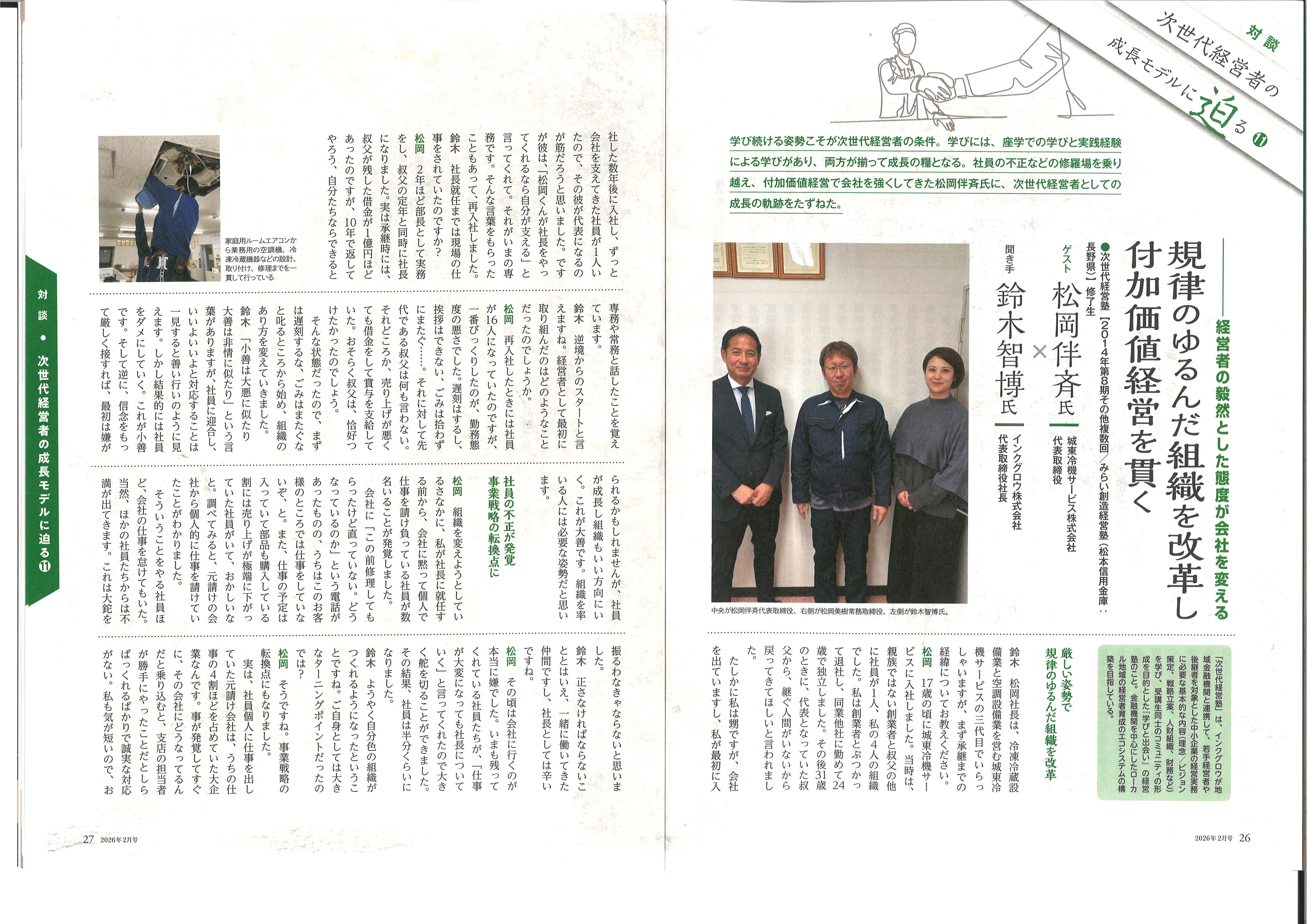 この度、松本信用金庫様主催のビジネスクラブでお世話になっている、インクグロウ株式会社の鈴木社長と弊社代表、松岡が特集記事への対談をしその内容がビジネス冊子